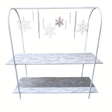White Frame Alejandro Bar with Faux Marble Shelves and Clear Acrylic Snowflakes and Icicles.